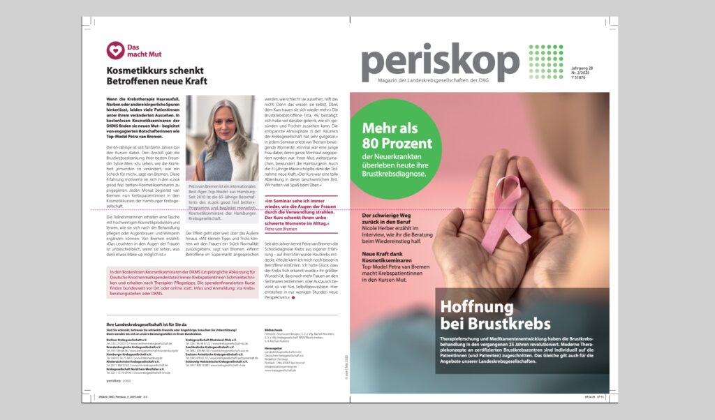 Für das Magazin der Deutschen Krebsgesellschaft schreibe ich seit 2021 Texte über alle Aspekte von Krebs.